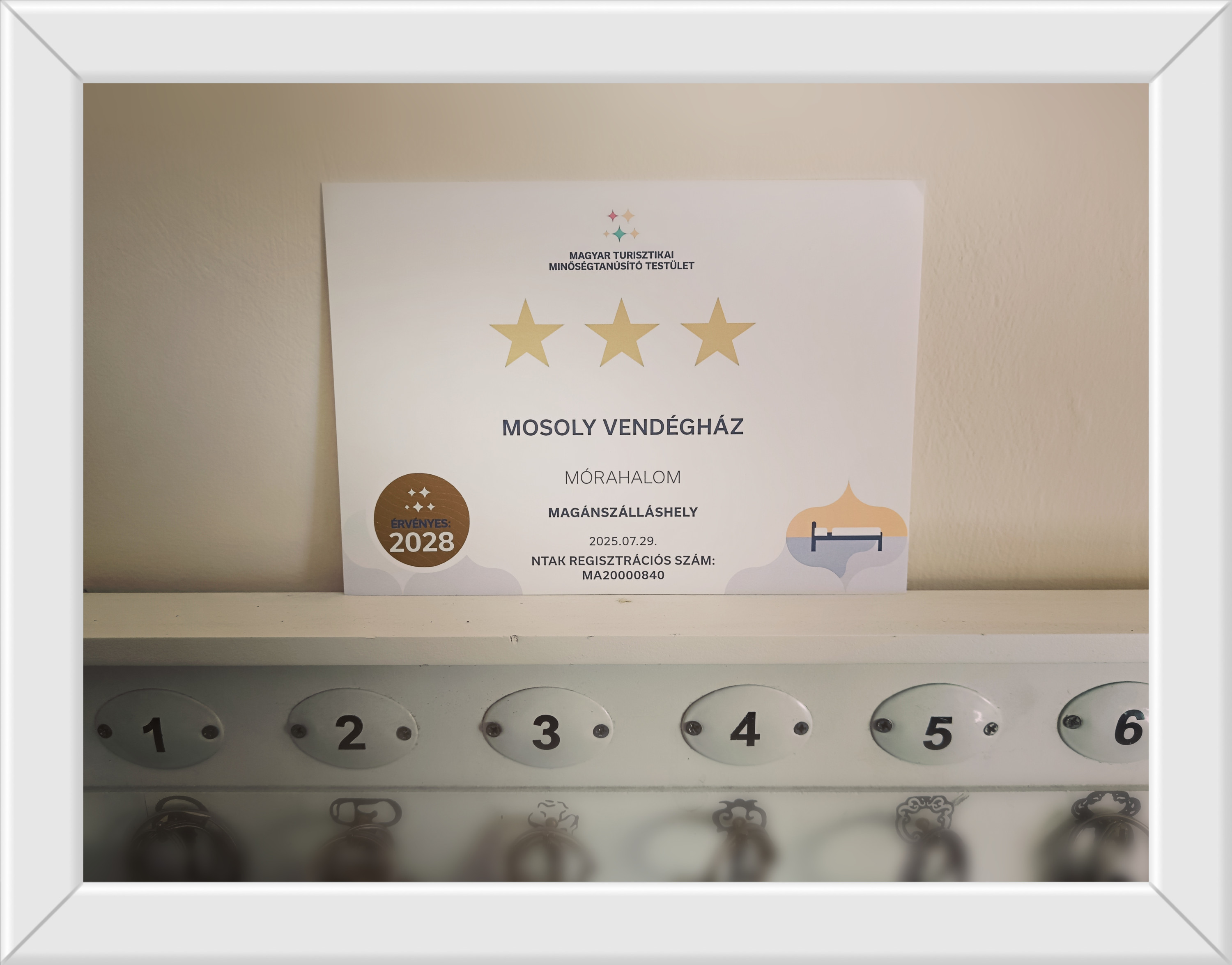 Ponosni smo, da je naš smeštaj dobio ocenu od 3 zvezdice od strane Mađarskog turističkog udruženja!